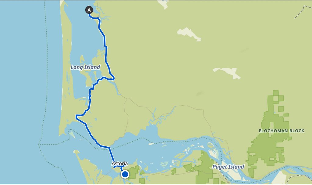 Bay Center, Cowlitz county, WA, to Astoria, Clark county, OR.