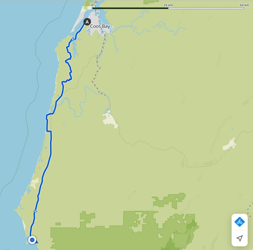 State roads: We joined the 101 eventually which was busy but had a wide shoulder. The 101 into Port Orford was busy and narrow in places but at times the shoulder was wider than the road itself.