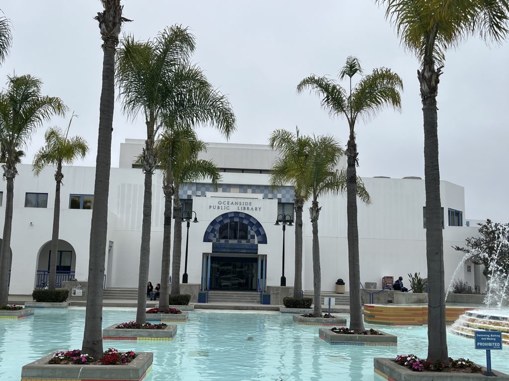 We had another 5 miles on the i5 – which had 4 lanes in each direction – compare it to riding on the M25 around Heathrow! We emerged unscathed and turned off into the marina at Oceanside, and then wound our way along the beach before turning into town to find a supermarket. From there we retraced our steps past the town library and went to find our AirBnB for the night before our last full day of cycling to get to the Mexican border.
